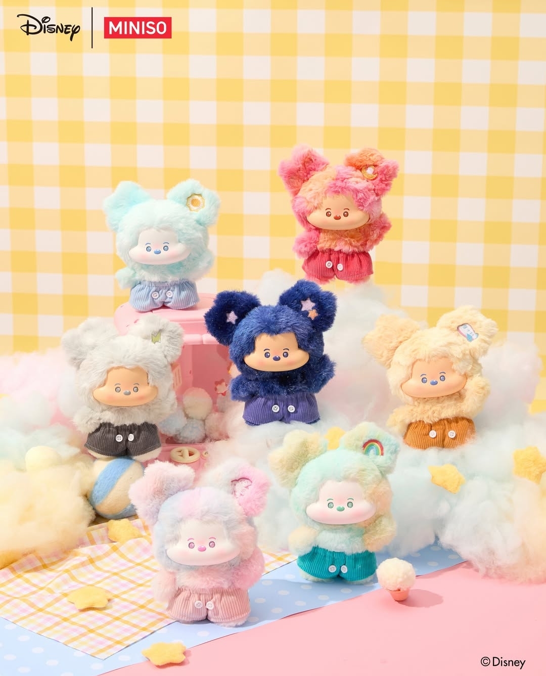 Tra i protagonisti assoluti della collezione ci sono le Blind Box Miniso, piccole scatole misteriose che racchiudono mini peluche di Topolino in versione “cloudy”. Ogni box è una sorpresa, un piccolo momento di meraviglia che unisce il piacere del collezionismo alla dolcezza del design.