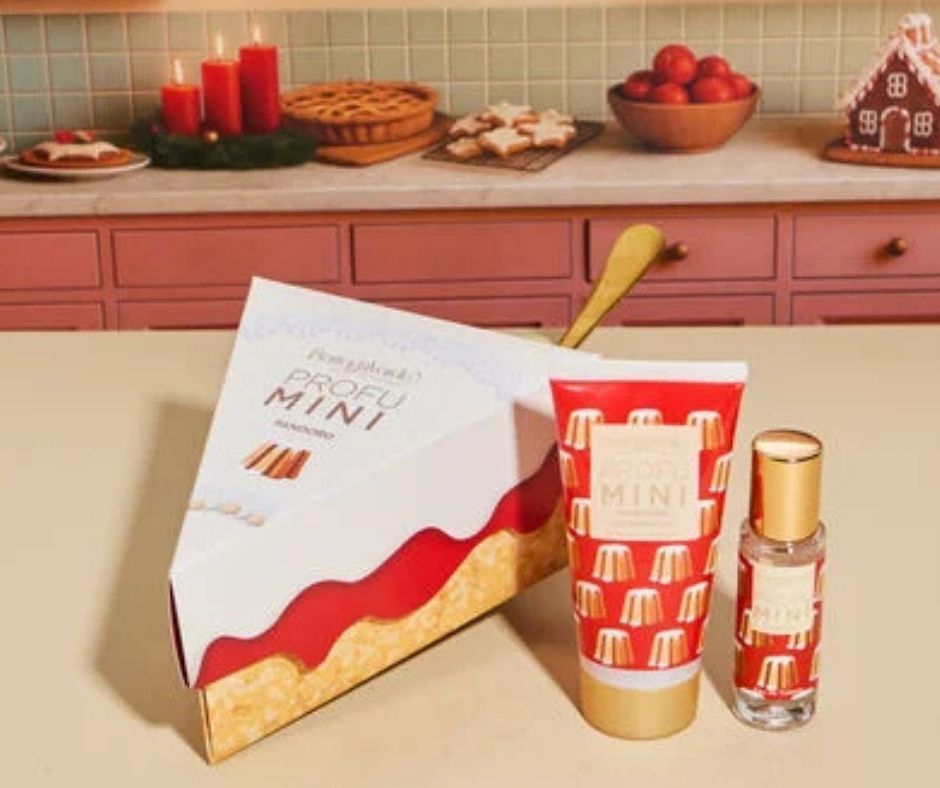 La novità di quest’anno si chiama Xmas Cake Box: piccole confezioni a forma di fetta di torta, pensate per essere appese all’albero come decorazioni profumate. All’interno, un ProfuMINO e il suo bagnodoccia coordinato, un duo che trasforma la routine quotidiana in un piccolo rituale di festa.