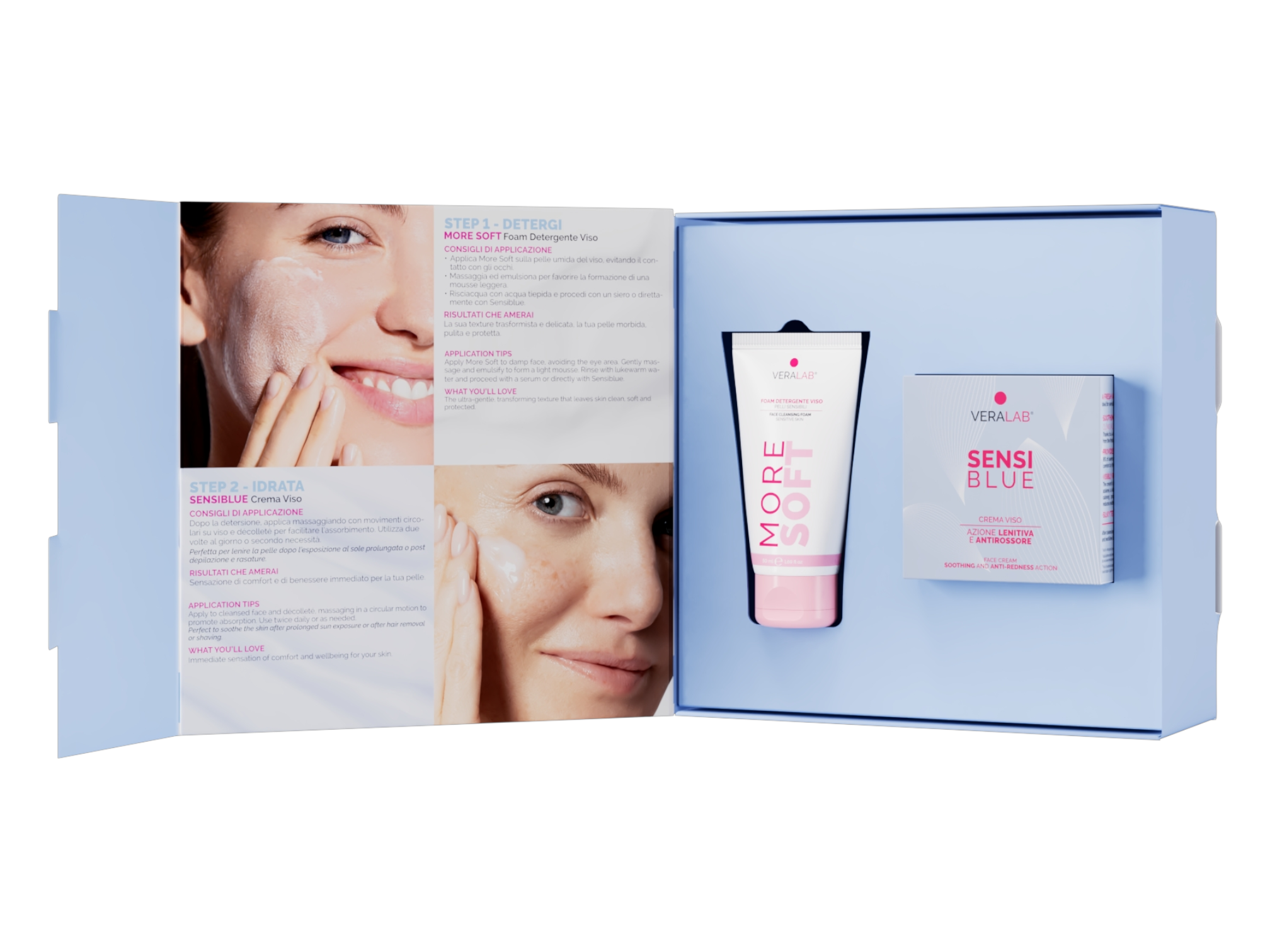Il kit SOS Pelle Sensibile è pensato per chi desidera una beauty routine essenziale ma efficace. Bastano due gesti quotidiani, detergere e idratare, per notare una pelle più calma, morbida e luminosa.