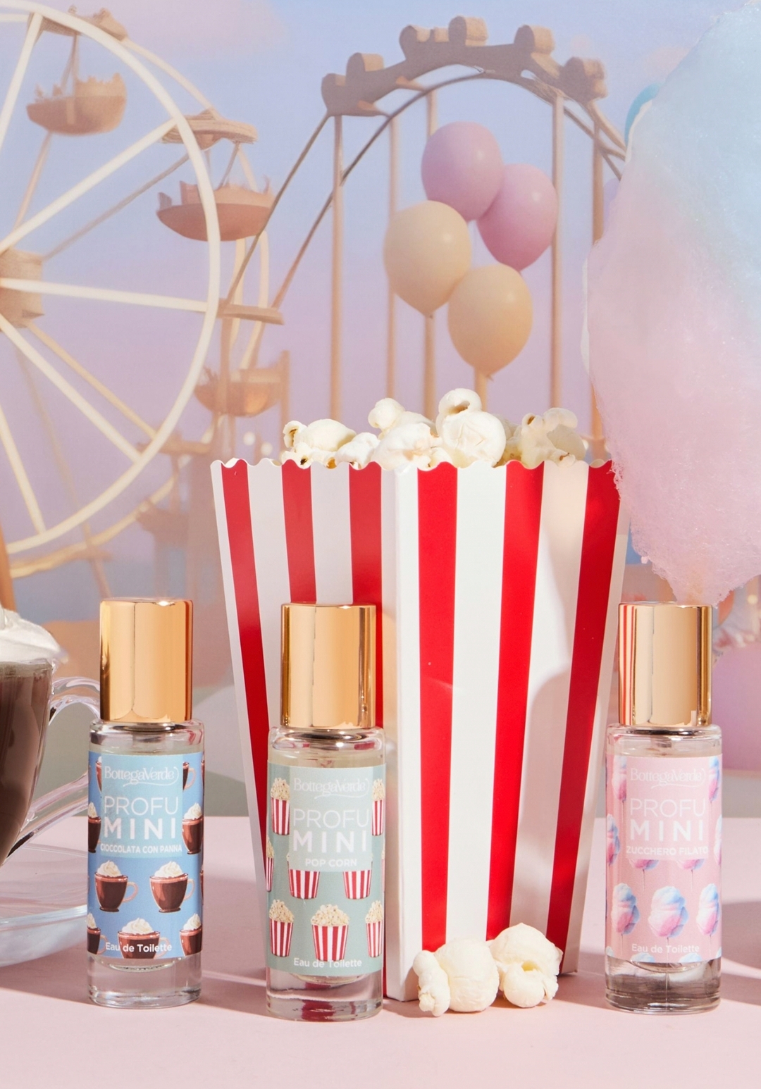 Bottega Verde torna a far parlare di sé con una nuova, irresistibile collezione di fragranze in formato mini. Dopo il successo delle precedenti edizioni, la linea ProfuMINI si arricchisce di quattro eau de toilette in edizione limitata dedicate ai profumi più golosi e cocoon dell’inverno 2026: Pop Corn, Caffè, Zucchero Filato e Cioccolata con Panna.